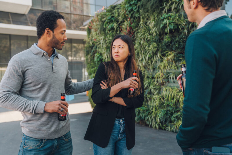 Displeased woman being harassed at an afterwork party